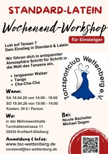 Der Tanzsportclub Wettenberg bietet Ihnen Trainingsmöglichkeiten in verschiedenen Tanzsportarten, von
